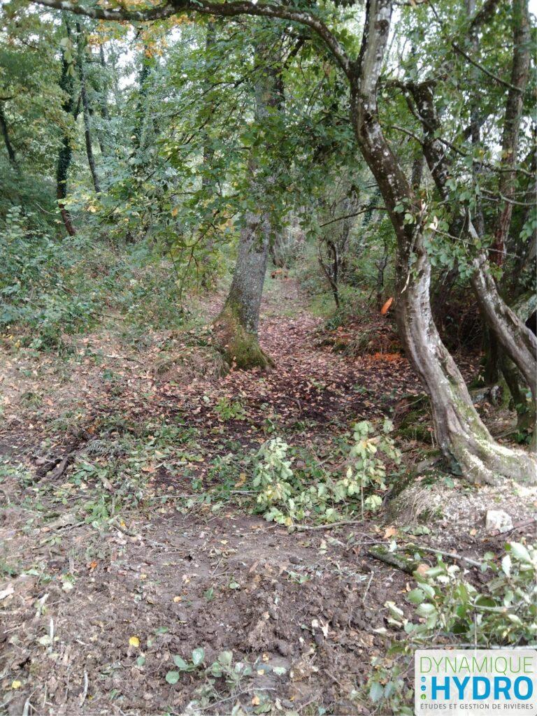 Les opérations préparatoires de coupes d’arbres sélectives sur le Mou de Pleure ont été réalisées début octobre pour s’adapter aux périodes sensibles avifaune et chiroptères. Elles ont permis de créer des accès et de stocker les produits de coupe qui constitueront les ouvrages bois.