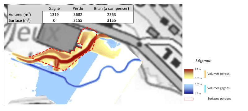 Nous avons également proposé une méthode de calcul des volumes de compensation des zones inondables perdues et recherché des mesures compensatoires.