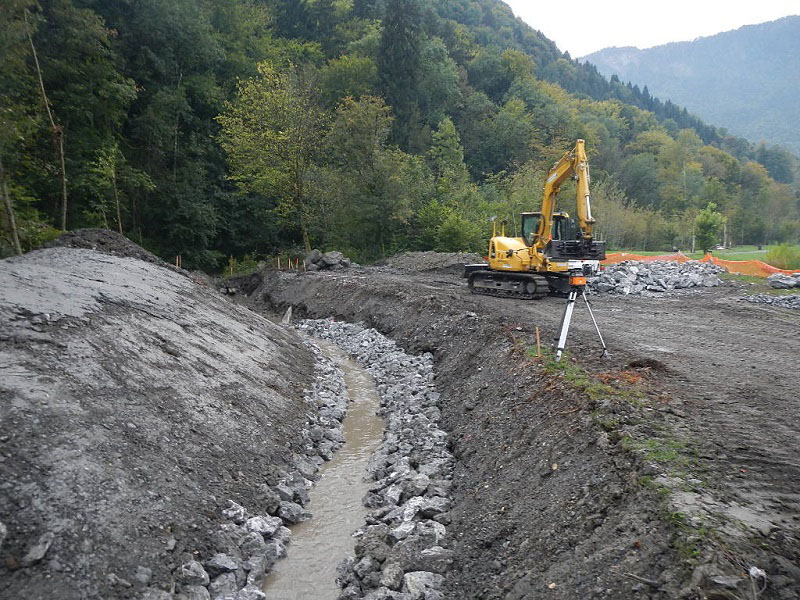Nous avons également effectué une campagne de terrain, des relevés topographiques, et des sondages de sols à la pelle mécanique.