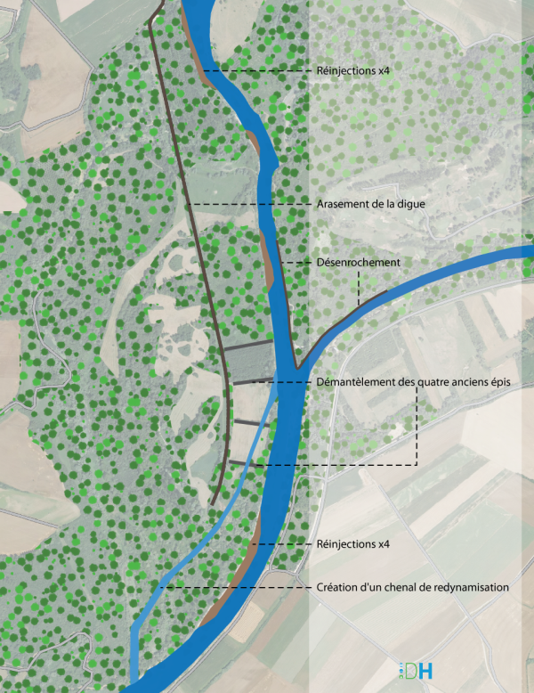 Ensuite, nous avons développé la conception du projet de restauration de la dynamique fluviale et de l’espace de mobilité du Doubs et de la Loue dans le secteur de la confluence.