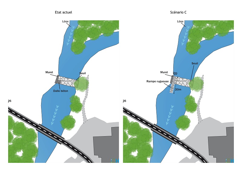 - rehausser le fond des tronçons déjà incisés en aval, dont l’état actuel favorise l’assèchement de la zone humide.