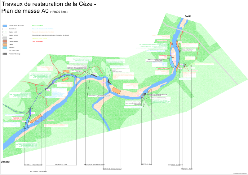 Plan de masse du projet de restauration de la Cèze