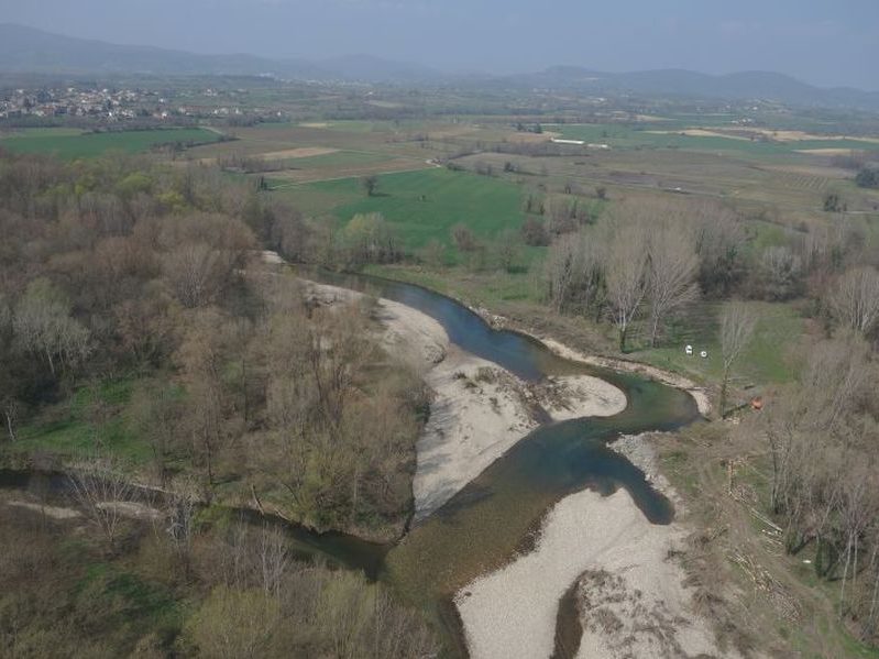 Vue par drone de la Cèze au droit du site de travaux