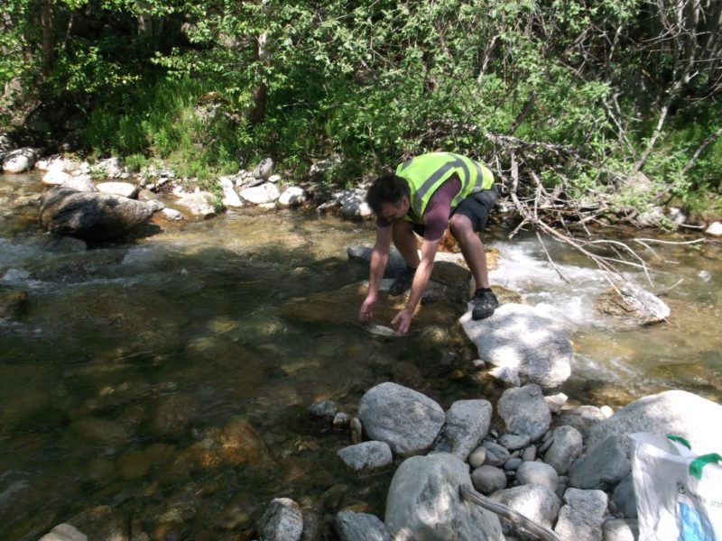 Loïc et Baadïs ont équipé des sédiments de la Haute-Ariège de Transpondeurs Passifs Intégrés (PIT) puis les ont injectés dans la rivière.