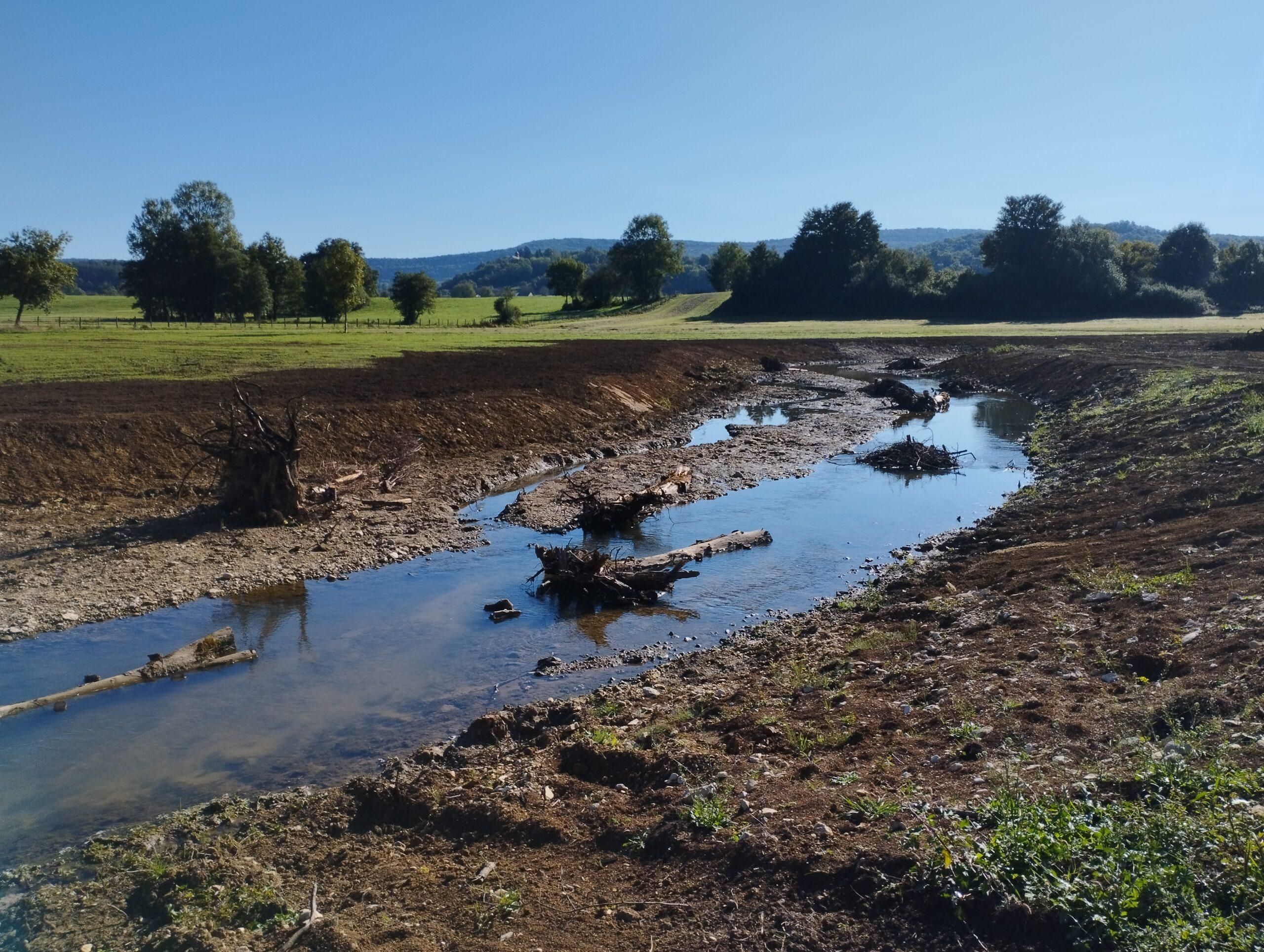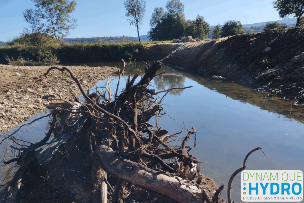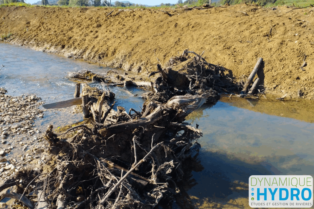Les bois morts et troncs souches ont ensuite été mis en place afin de favoriser la diversification des écoulements, le piégeage naturel des sédiments et la création de micro-habitats pour la faune aquatique. Ces structures jouent un rôle essentiel dans la restauration.